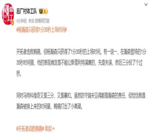 美球迷:楊瀚森在NBA打球就像烏龜與兔子,甚至有人覺(jué)得他是烏龜瀚森,但開(kāi)拓者的管理層也意識(shí)到球隊(duì)對(duì)楊瀚森的使用是不合理的。